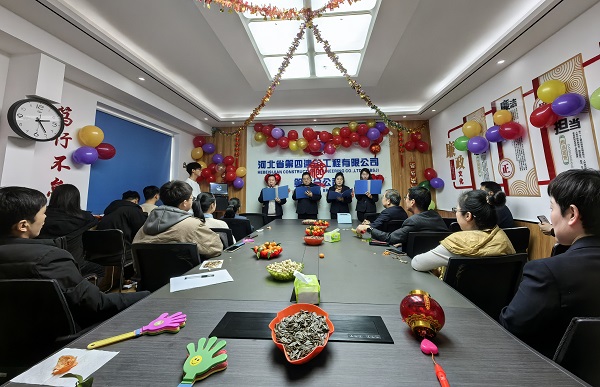 一分公司机关和各项目部分别举办了“迎新年、鼓干劲、启征程”联欢活动。职工欢聚一堂,在欢声笑语中共同庆祝元旦佳节。元氏医院项目部、元氏管网项目部联合举办了迎新年联欢会,大家分享暖心故事、对诗猜谜语、唱红歌,在生活区举行拔河比赛,在喜气洋洋的氛围中传递着满满的正能量。
